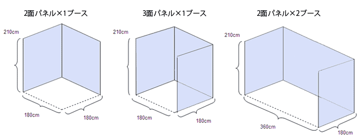 | ・2面パネル×1ブース 69,000円(税込) (スポットライト2個付き) ・3面パネル×1ブース 79,000円(税込) (スポットライト3個付き) ・2面パネル×2ブース 138,000円(税込) (スポットライト3個付き) |