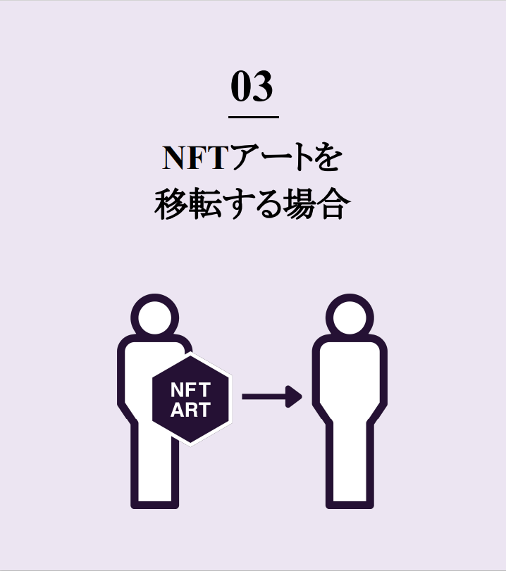- A. ブロックチェーンインフラには所有者の個人情報や作品の購入価格などは記録しておりませんので、プライバシーを保護しながら安心してご利用いただくことができます。