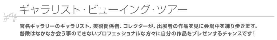 美術が本来持っている個の力を、作品から、展示から、またマーケットから引き出すことを目的とし、美術界の次代を担う若手ディレクターにスポットをあて、常に新鮮な感性を届けるフェアとして継続を図ることを意図しています。
