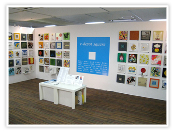 C-DEPOTは、絵画、立体、伝統工芸、映像、メディアアートなど、様々なジャンルのアーティストによって構成されている集団です。今回は約30名のメンバーが参加することになったので、私たちはまず数で勝負しようというコンセプトを立てました。そして「C-DEPOTsquare」と銘打ち、全てのサイズを25×25cmに固定した作品を、壁面に100点を飾るというチャレンジに踏み切りました。C-DEPOTにとって、こういったアートイベントに参加することは始めてのことでしたが、とても有意義でした。