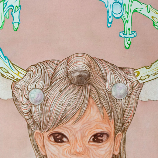 color pencil, acrylic, oil, cotton cloth on panel