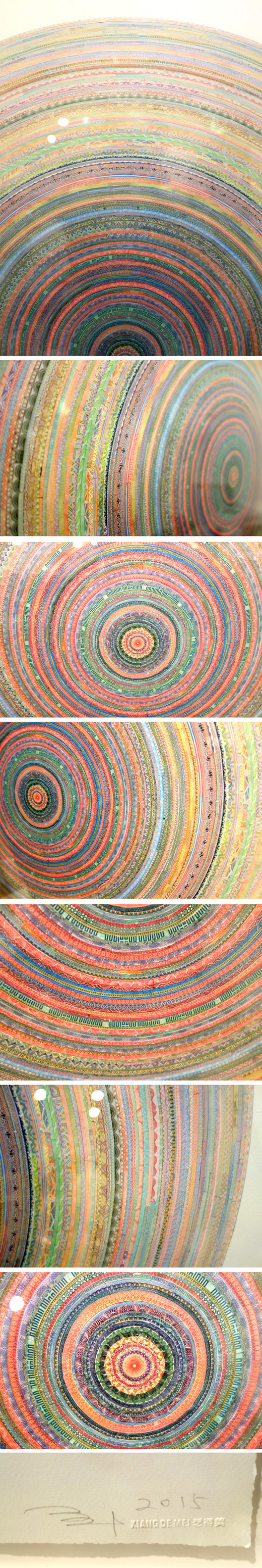 今回の作品は大量の中国の紙幣(人民幣)を切り刻み、貼り合わせ作られた「紙幣曼荼羅」である。仏教において悟りの境地を表す「曼荼羅」、あるいは禅の極致である「円相」を、物質主義の象徴である「お金」をベースに制作することで現在の中国の社会主義のタブーにも挑む話題作である。