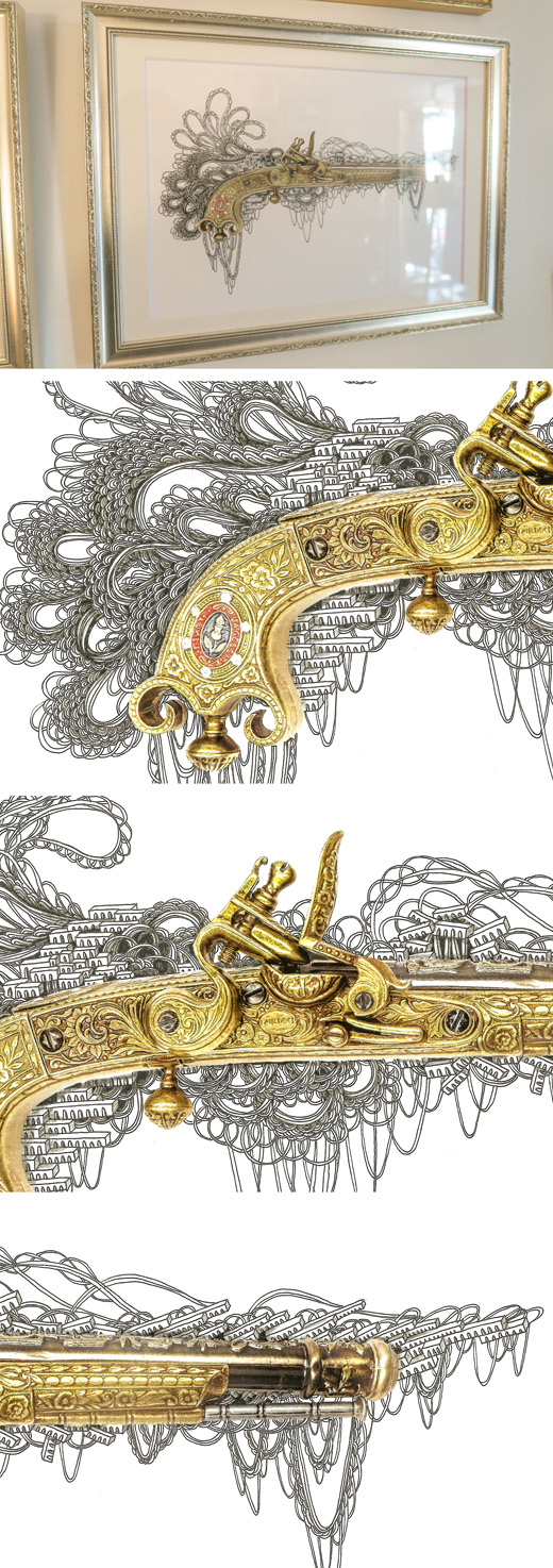 それまでの銃は火縄式(マッチロック式)で点火していました。しかし火縄式は単純ではあるものの、湿気に弱く、火種が光源となり敵に見つかる危険性もありました。そのため、撃鉄が振り下ろされるその瞬間まで火種が現れないフリントロック式は、新しい点火方法として広まり、約200年間、世界で使用されました。
