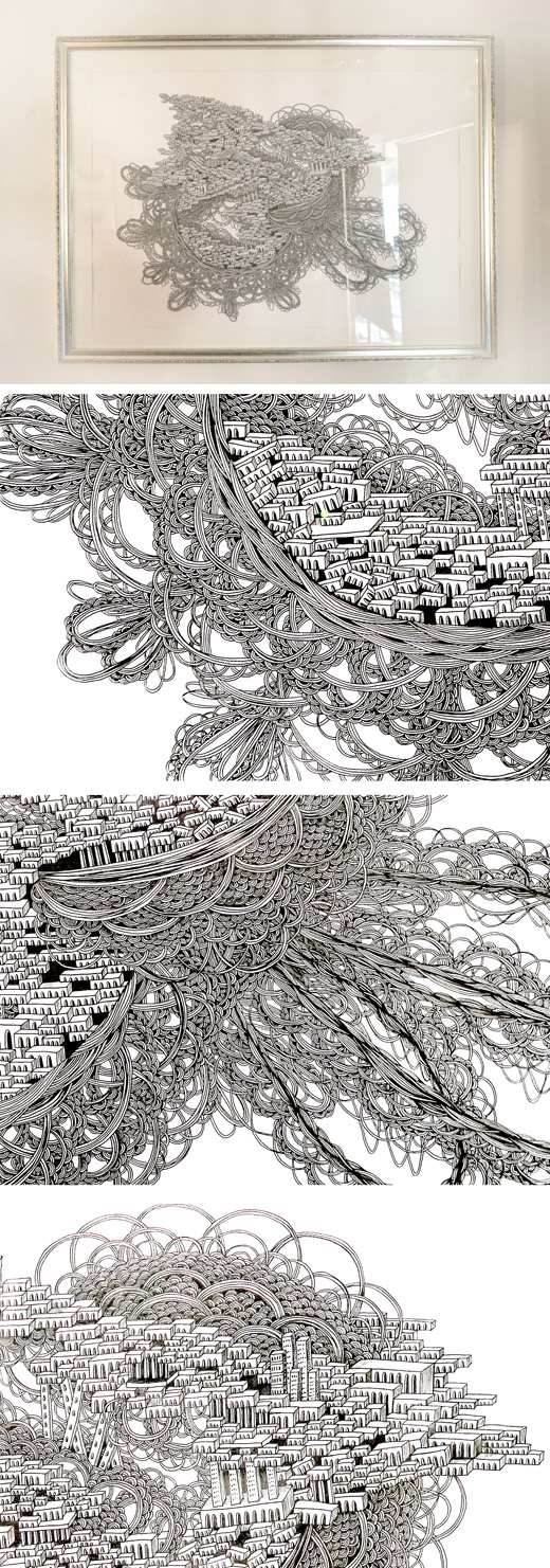複雑に絡み合う線状の抽象物は「フラクタル構造」を意識して描かれています。