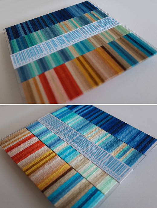 作品のバーコード部分は人間と人間の生活そのものを表し、カラー部分は人間をとりまく世界を表しています。この世界には様々な人間、様々な物で溢れています。小さな部分にフォーカスしてみると、人と人は時にお互いにうまく行かなかったり、物と物も組み合わせがちぐはぐであったりします。