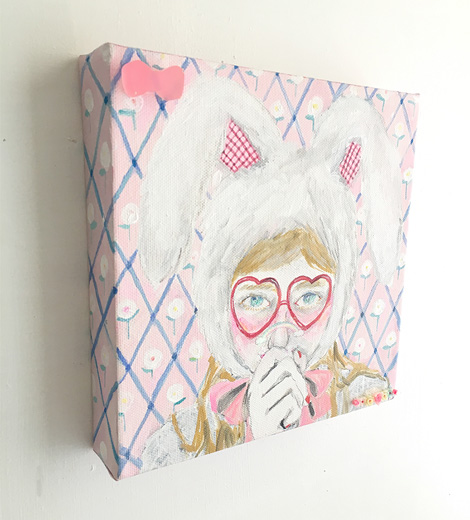 チャーミングで多幸感溢れるカラーリングを軸に、時には小物やお菓子なども素材に選びながら、甘さだけではないオリジナルなエッジの強さが人気の東ちなつの作品。本作は「コンプレックスを持つ女の子」をテーマに、自身が制作する樹脂パーツがミックスコラージュされた作品です。