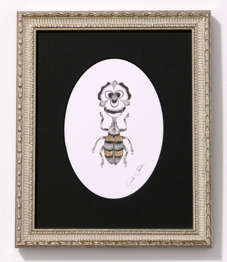 「ColourfulBlack 色とりどりの黒」というベースコンセプトで制作を続けている、yutaokuda氏。ブラックインク一色のみによるペン画でありながら、まるでそこに豊かな彩りがあるかのような洗練された構成美、緻密で「カラフルな」黒づかいが彼の絵の魅力です。生物や花などをおもなモチーフに、ディテールの細かい描画と対をなす気品溢れる空白の余韻も光ります。本作は、およそA4サイズ大の生物シリーズの一作。額装にまでこだわった作品です。