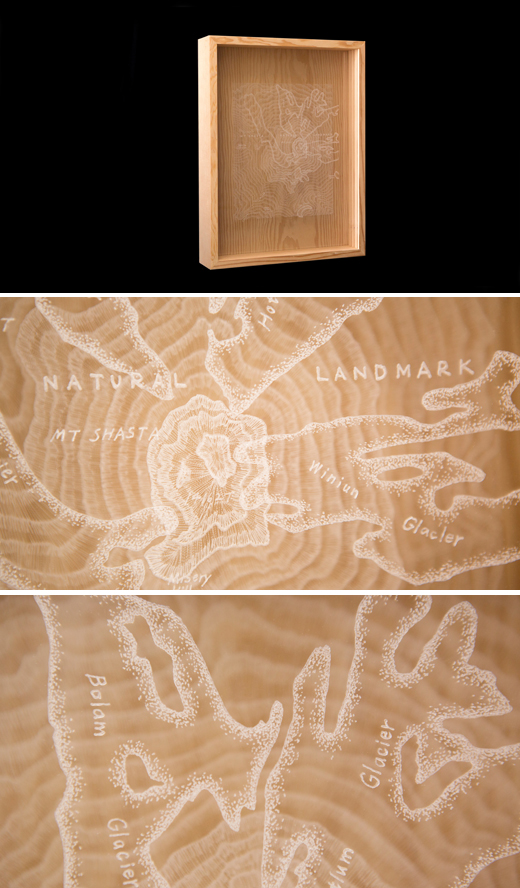 アクリル板を削って描画したものを重ねています。/素材:アクリル板、米松