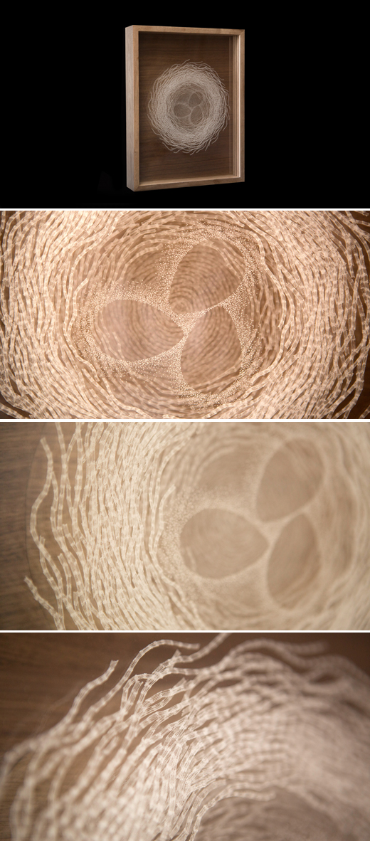 アクリル板を削って描画したものを重ねています。/素材:アクリル板、ウォールナット