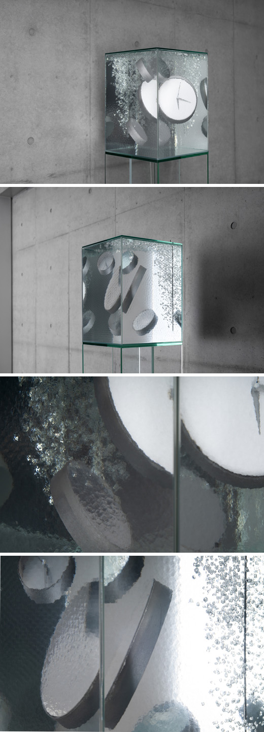 時計は実際に動作します。この作品は大きい順に右、左、右回転となります。