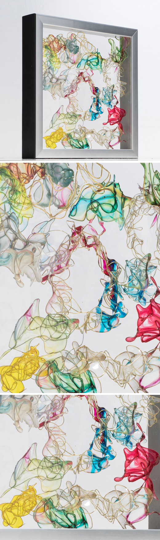 鮮やかで透明な樹脂とワイヤーを組み合わせた独自の作品は、不可思議でスタイリッシュ。