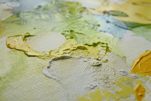 In addition, at the same time as creating three-dimensional paintings with visually unbroken views, her paintings have a horizon that spreads beyond the canvas.