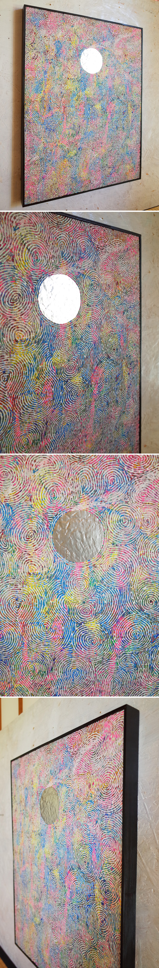 金、銀、黒のサークルは、太陽や月もしくは日食に見えるかもしれない。