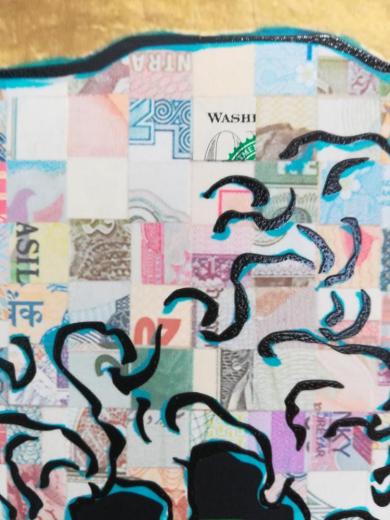 販売品は新タイトル(新規にコラージュされた紙幣番号)、作家サイン、Edition番号が記載されます。