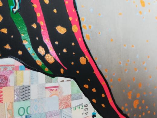 ジークレー、シルクスクリーン、世界100カ国紙幣カモフラージュコラージュ