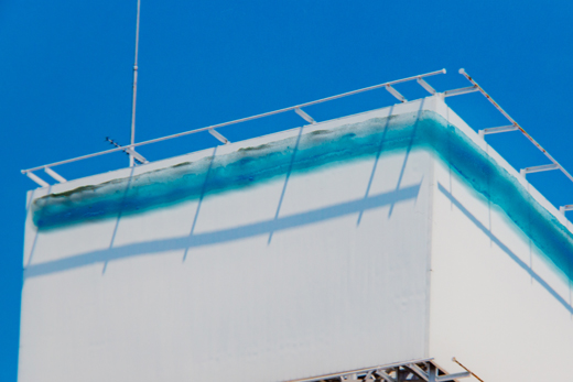 本作はそのような頭上の空白を切り出し目線高に設置して、青い光で照らすことによって私がそれらから感じたメッセージをより明確に可視化する試みである。