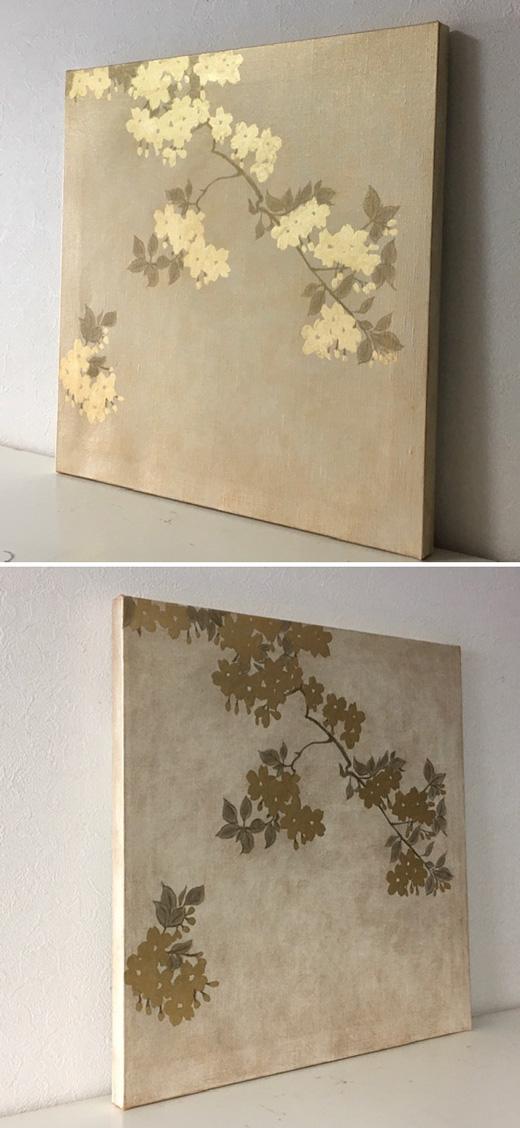キャンバスに油彩と金色の箔だけで桜の絵を描きました。