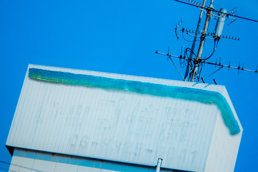 本作はそのような頭上の空白を切り出し目線高に設置して、青い光で照らすことによって私がそれらから感じたメッセージをより明確に可視化する試みである。