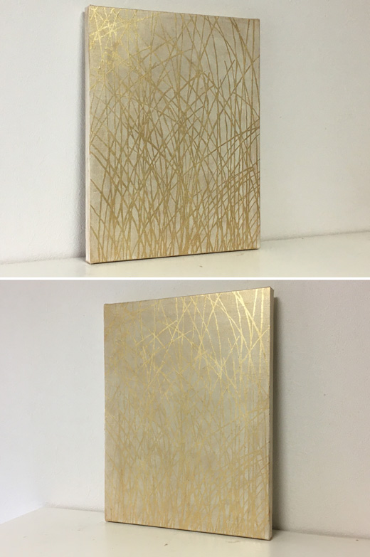キャンバスに油彩と金色の箔で芒の絵を描きました。