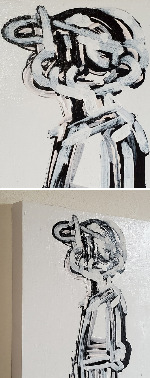 日々意識的無意識的に行っている反復運動とそれに費やした時間を、同じイメージを何度も描き重ねることで「生」を表現している。