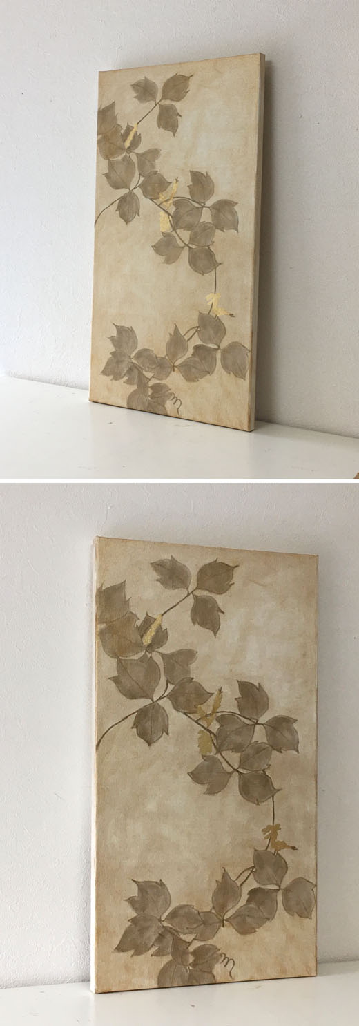 キャンバスに油彩と金色の箔だけで蔦の絵を描きました。
