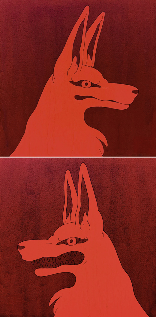 阿吽シリーズの3作目です。朱色と蛍光レッドの色彩の組み合わせは神聖な雰囲気がありとても気に入っています。