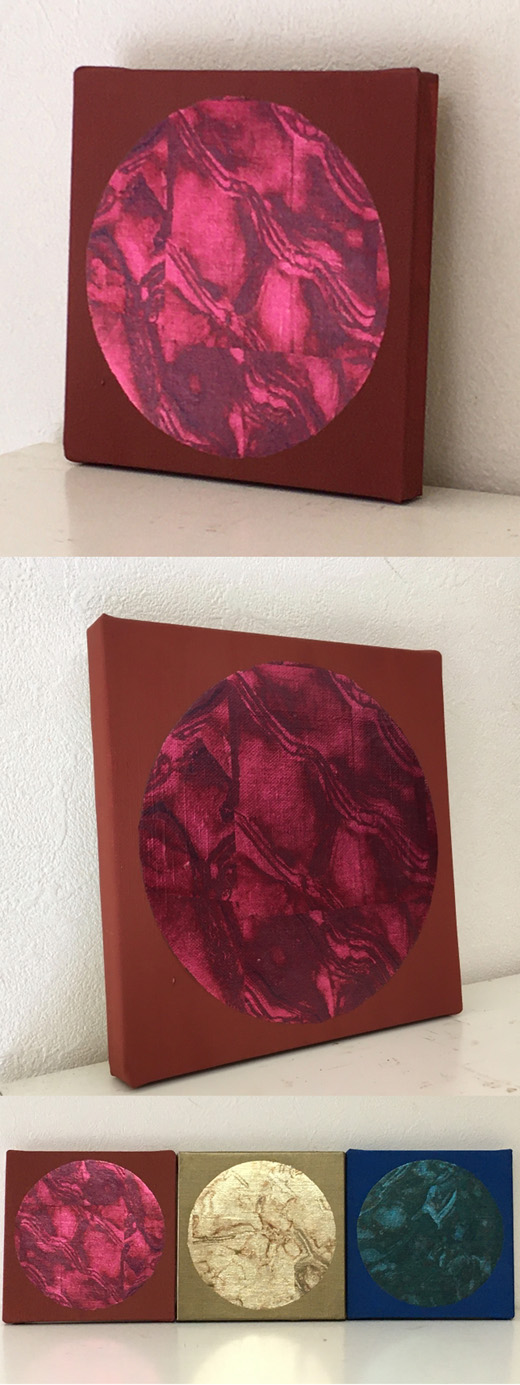 キャンバスにアクリルと色のついた箔で月の絵を描きました。
