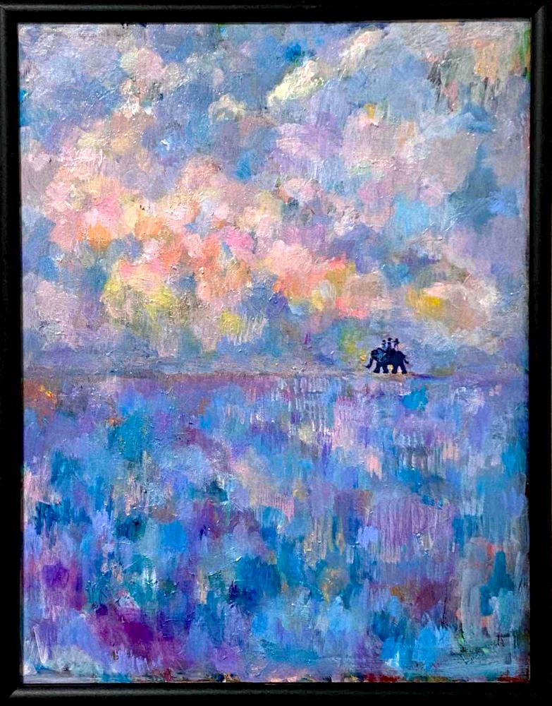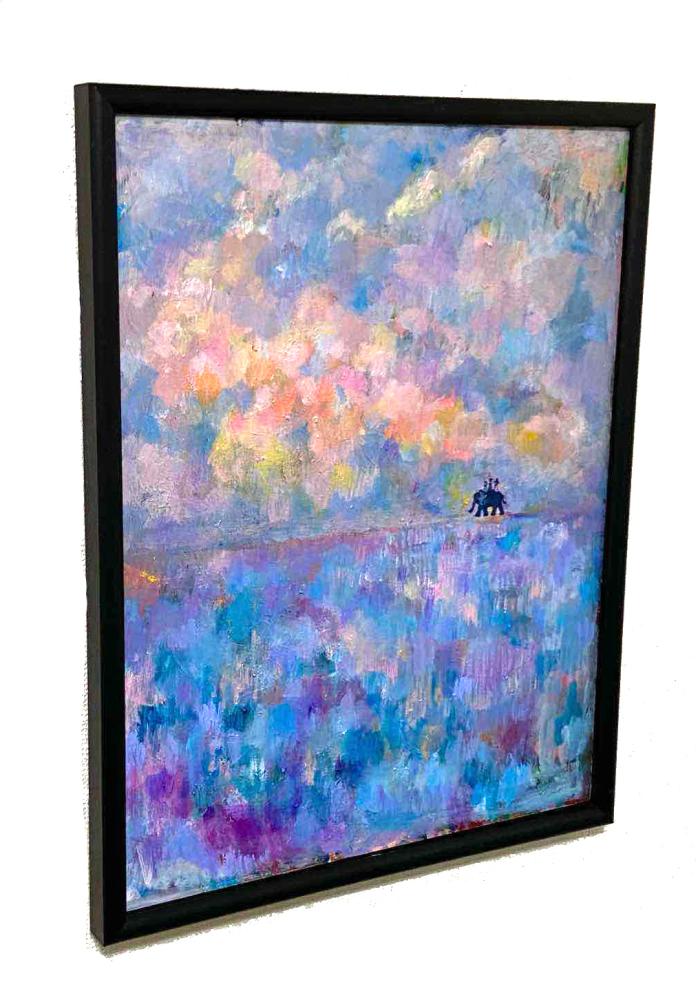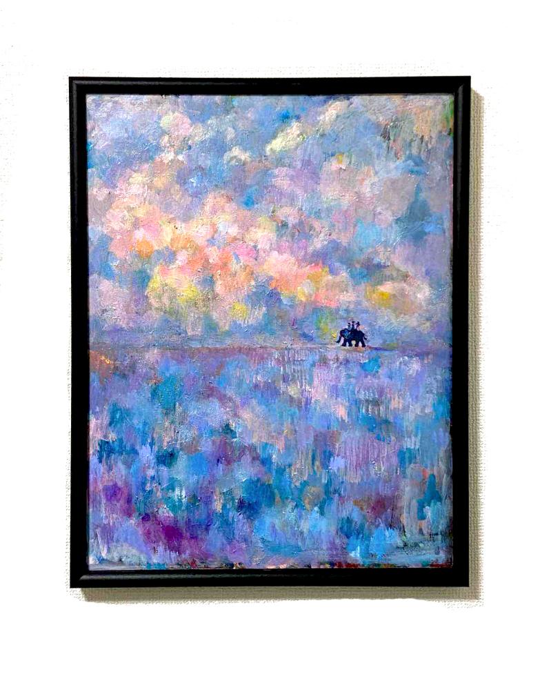 木製パネルに油彩で描きました。絵の厚みは約1cmあり額装してあります。額の厚みは約3cmです。 [設置について] 直射日光や空調など冷暖房が直接絵にあたる場所への設置は お控えくださいますようお願いいたします。
