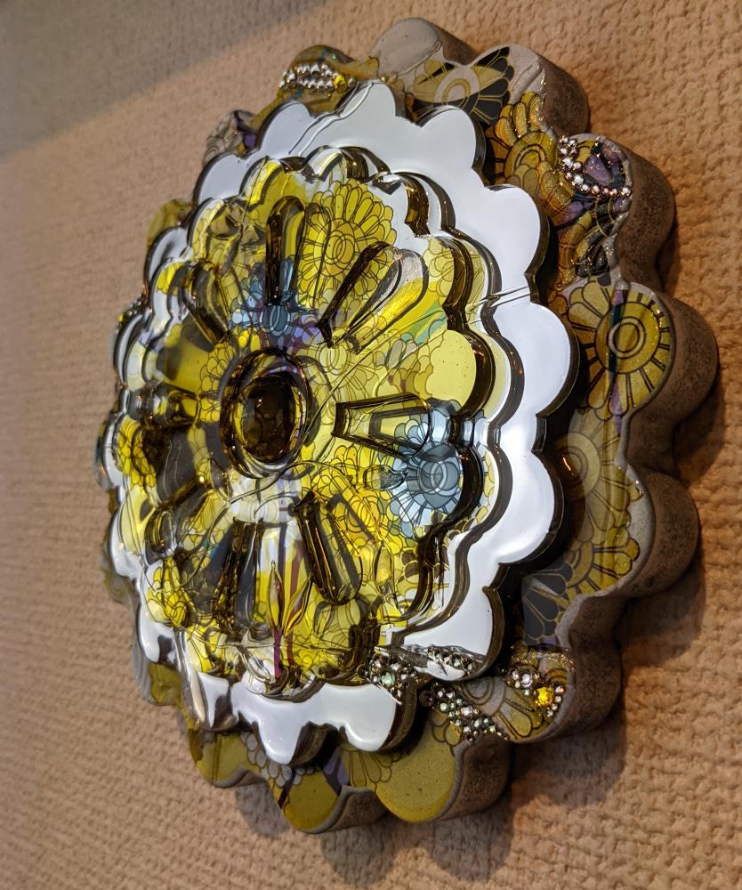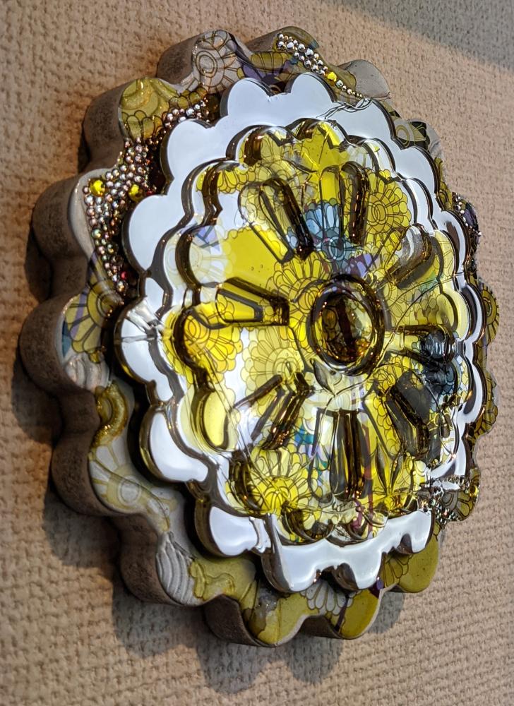 月乃カエルの作品は、透明樹脂を中心として、様々な素材で構成されたミクストメディア作品です。