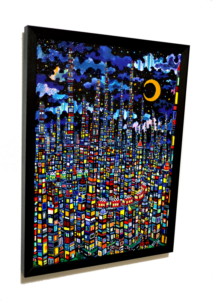 木製パネルに油絵の具で描きました。絵の厚みは約2cmあり額装してあります。