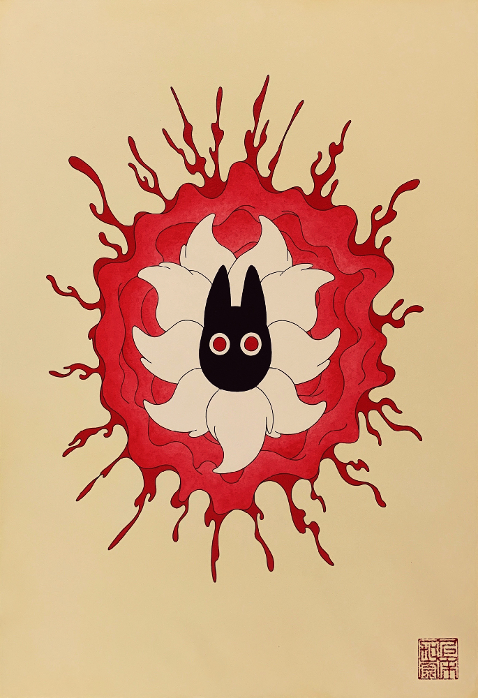極めて日本的なモチーフで描いているが、そこには震災を意味するなどコンセプチュアルな表現を巧みに作品の中に入れている。