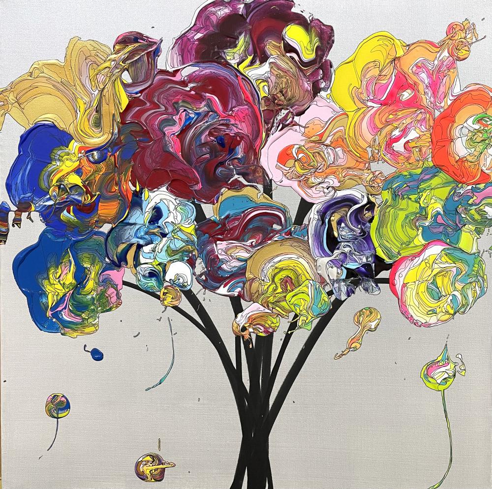 コロナをきっかけに日々の当たり前だと思っていたことが、実は特別な出来事だったと気付き、その当たり前に感謝し、その思いを作品にしたいと思いから’with gratitude’というテーマで、鑑賞者に感謝を伝える「花」を描いています。