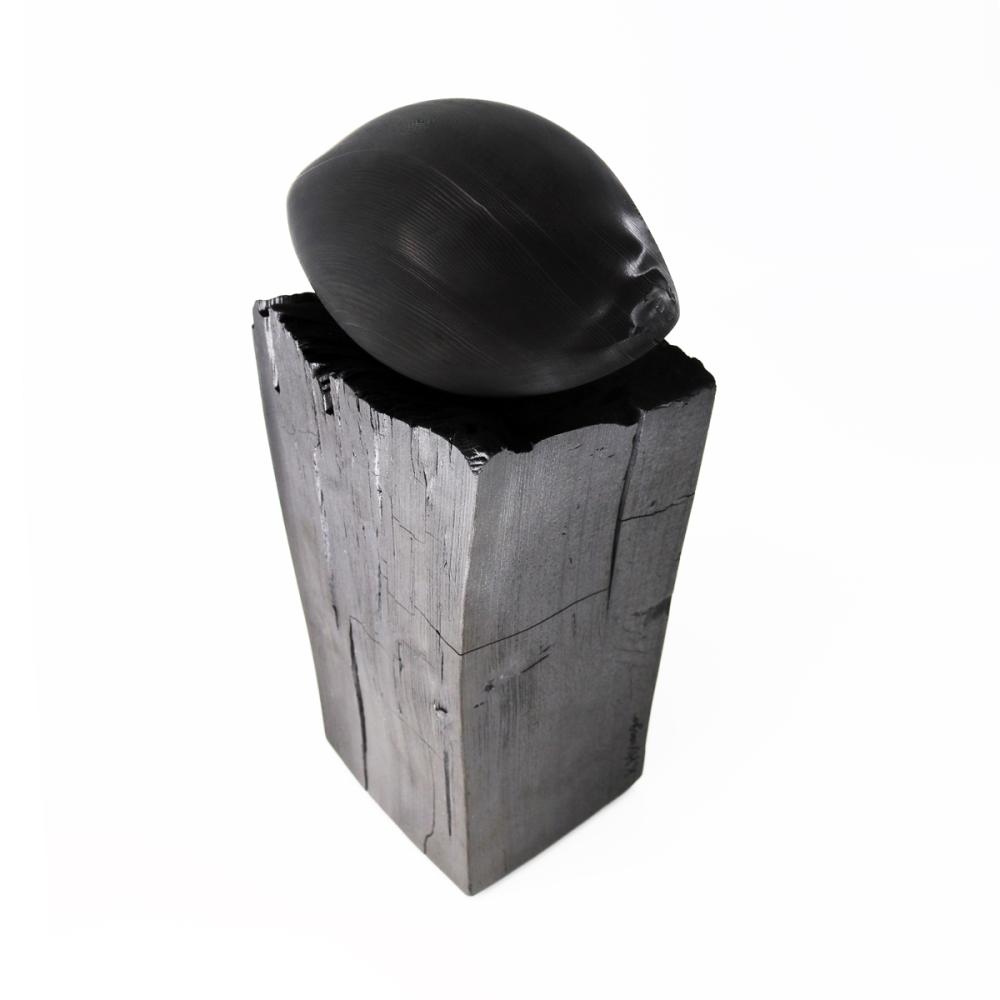 創作は樹々を炭化することからはじまる。新たに再生された炭と対話しながら成形をし磨きあげることで輝きを纏った作品が生まれる。無塗装の炭の輝きにfuれることで新たな気づきを感じていただきたい。