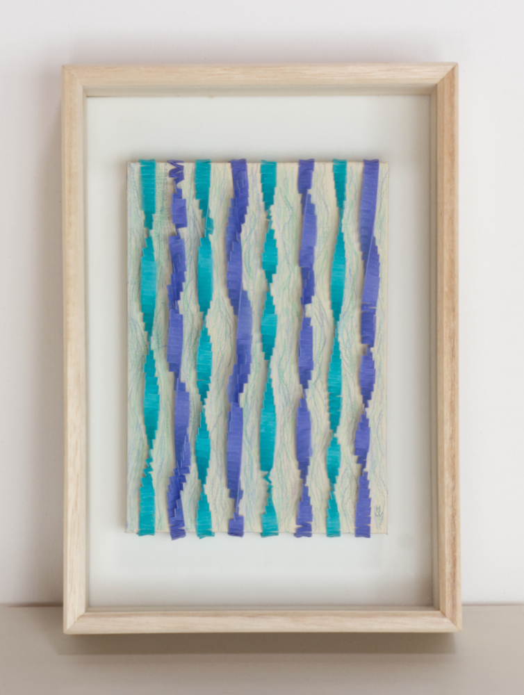 目には見えないけれど、生きものが活動する中に存在する《流れ》を想像して制作しています。 自分の力を少し加えることで思いがけない歪みや動きを生む紐や針金、紙といった素材から自然界の見えない法則を感じ、私一人でなく自然の持つ力によって生まれる幾何学的な形の魅力を表したいと思っています。