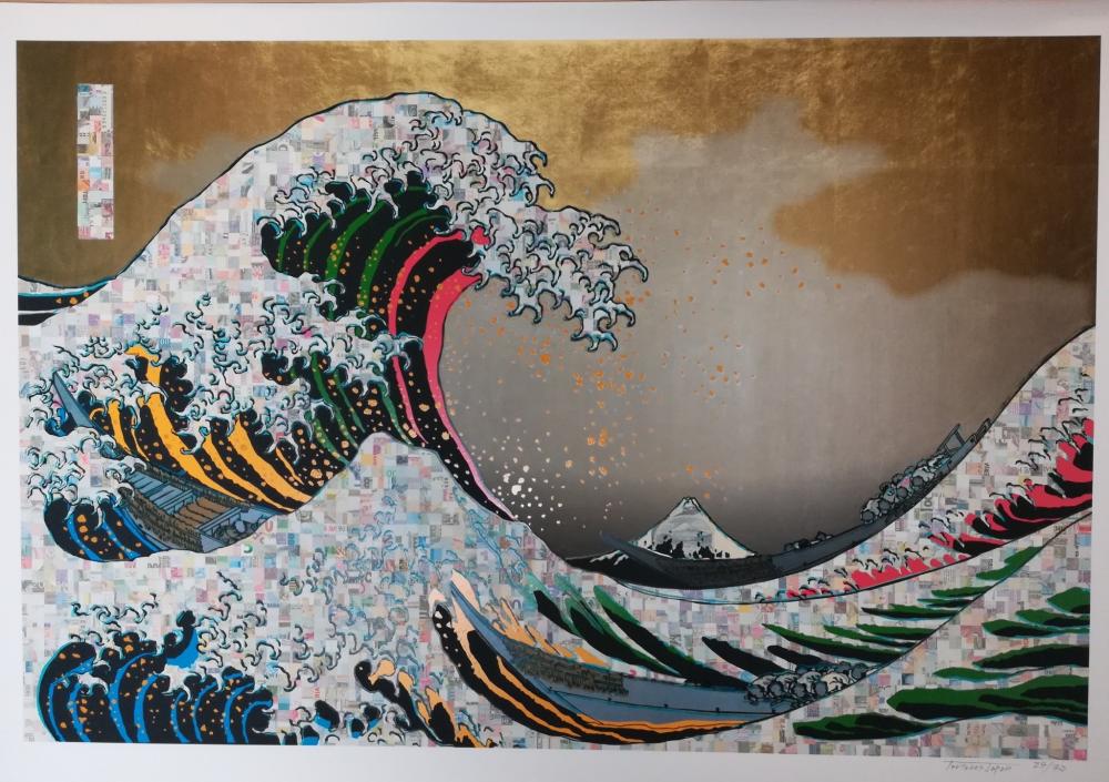He expresses the process of creation of the world mainly by using banknotes, currency system, Ukiyoe and classical art of the world as materials.
