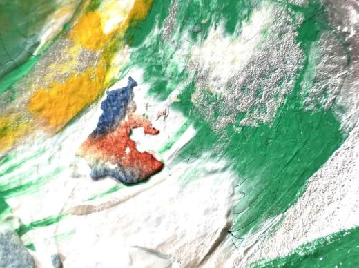 私は「見えるモノと見えないモノ」というコンセプトで描いています。 絵を見ている人の記憶を呼び起こし想像し"みる"という行為をすることで、見えているモノとは違う見えていなかった何かに変化するモノが垣間見れればと思い制作しています。この「image」という作品は以前描いた作品の上に絵具を新たに描きました。絵具をのせることで変容する記憶を表現しました。