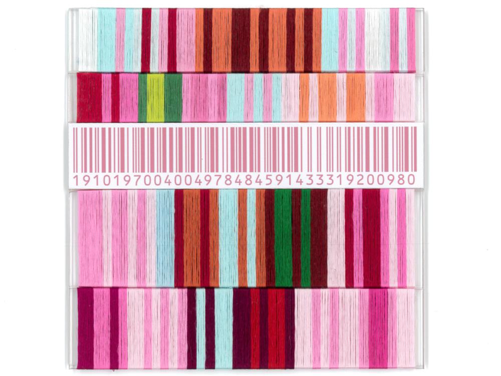 作品のバーコード部分は人間と人間の生活そのものを表し、カラー部分は人間をとりまく世界を表しています。この世界には様々な人間、様々な物で溢れています。小さな部分にフォーカスしてみると、人と人は時にお互いにうまく行かなかったり、物と物も組み合わせがちぐはぐであったりします。
