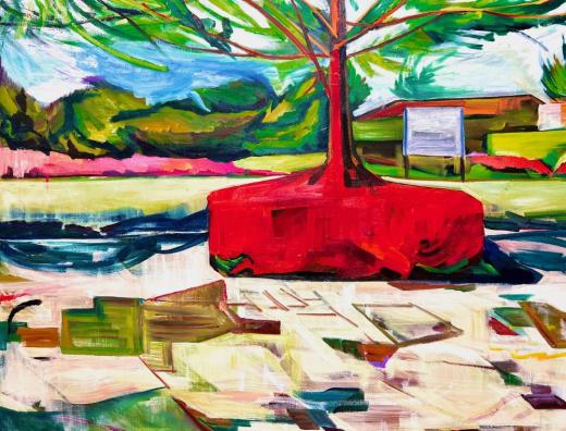 ですが、私はあくまでも撮りためておいた写真の中の景色は、形や色を記録したものとして扱います。なぜなら、私は写真の中に映し出されたモチーフをそのままキャンバスに描き写し取るのではなく、私と絵とのやりとりで出てくるモチーフの捉え方を描きだすことを大切にしているからです。