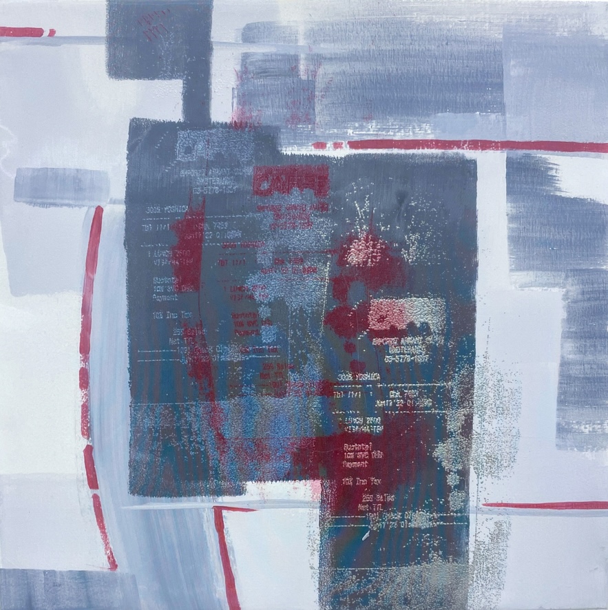 本シリーズ[Second skin/ セカンドスキン] はレシートをコピーし、コピーしたものを再度コピーする行為を重ね、イメージが崩れた図像をシルクスクリーンで施した作品です。