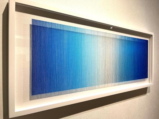 盛り上がりのある線によってその小さな立体の線の反復がさざ波のような立体でもあり、壁面に展示する形態としての平面でもあり、また、海の波ように見える具象でもあり、線という抽象でもあるような、境界をぼかすような存在を意識して制作しています。