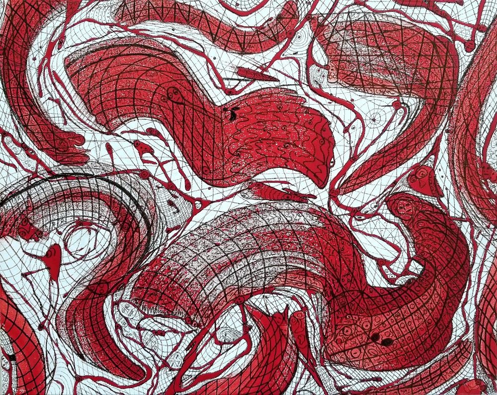 キャンバスにウレタン、顔料、インク