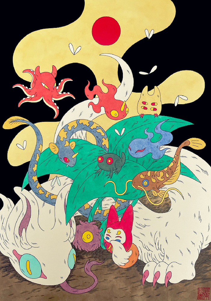 まだ若くアーティストとしての対外的な展示などもほぼ初めてといった新人ながら、その圧倒的な構図のうまさと線の描写の確かさは同世代のアーティストの中でも群を抜く。