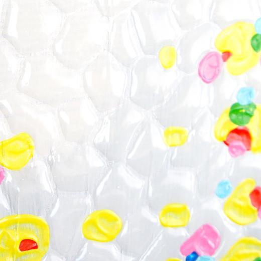 ウッドパネルに紙を貼り付けてペインティングナイフとスポイトを用いてアクリルと樹脂で着色