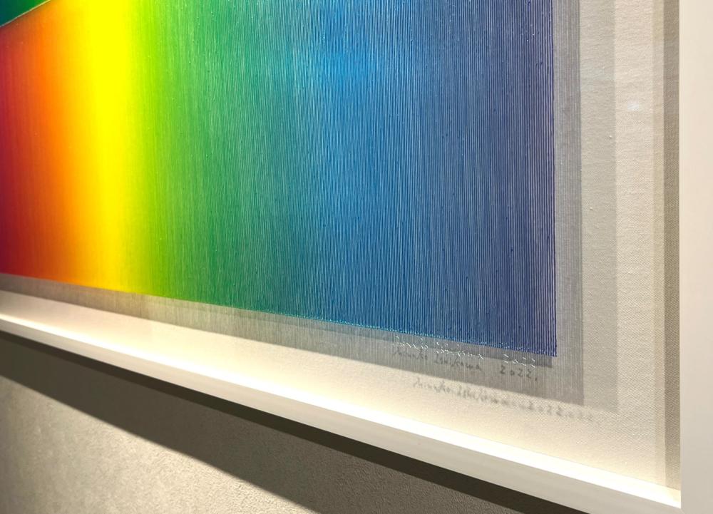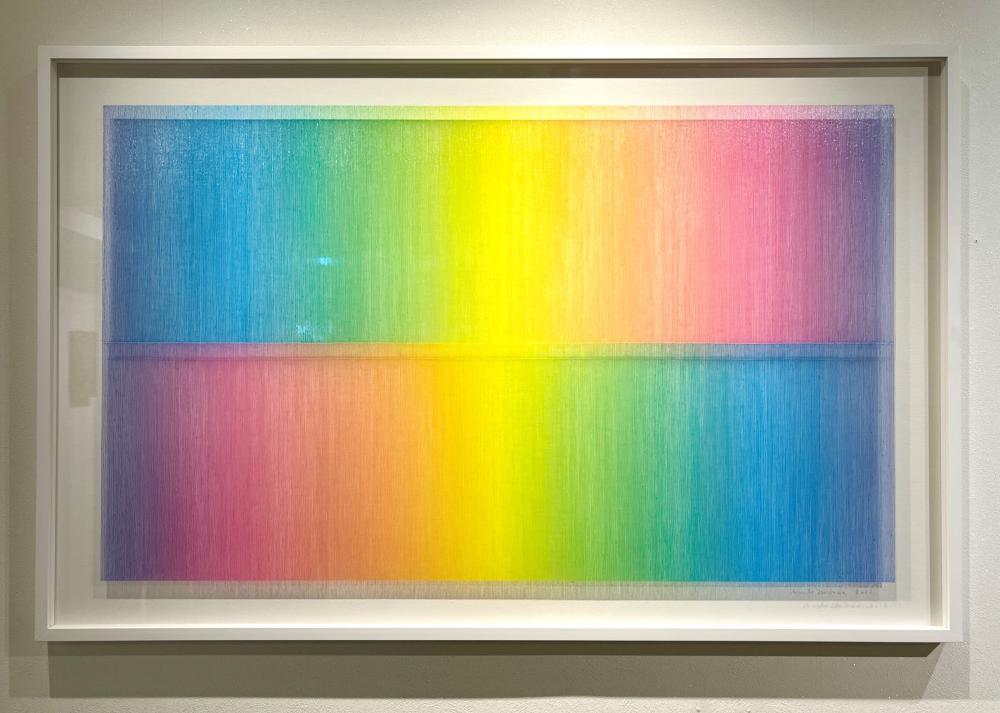 Artists who can draw beautiful gradations are hard to find in this world, right? The true beauty of Minako Ishikawa's work is that the lines are drawn with a single thin acrylic stroke, which is arranged among thousands while subtly changing the color scheme. It is not unusual for her to continue drawing a thin line with the same thickness in a straight line without it thickening left and right.It is surely what God makes. If you think that she paints her work with the colors of the rainbow on a transparent acrylic board, she will change it freely, like drawing with blue on a white canvas, and will attract viewers with her gradations. According to Ishikawa, this work is a work that extracts the "light" that fills the air. In addition, Minako Ishikawa's works feel crafty, beautiful and refreshing without being disturbing, giving us a feeling of openness that you will never get bored of even if you look at it many times. It seems that she has been able to earn high praise on international stage by holding exhibitions in Taiwan several times since two years ago. Despite being time consuming work, her work is highly popular because it is still being sold at a relatively affordable price, so it is advisable to purchase it now. She is one of the artists gathering attention who will grow even more in the future.