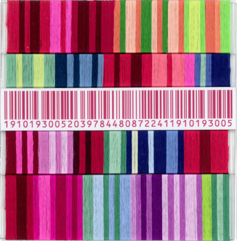 作品のバーコード部分は人間と人間の生活そのものを表し、カラー部分は人間をとりまく世界を表しています。この世界には様々な人間、様々な物で溢れています。小さな部分にフォーカスしてみると、人と人は時にお互いにうまく行かなかったり、物と物も組み合わせがちぐはぐであったりします。