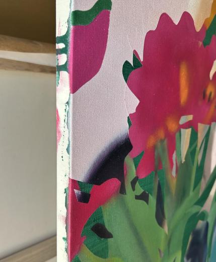 キャンバスに油彩、アクリル
