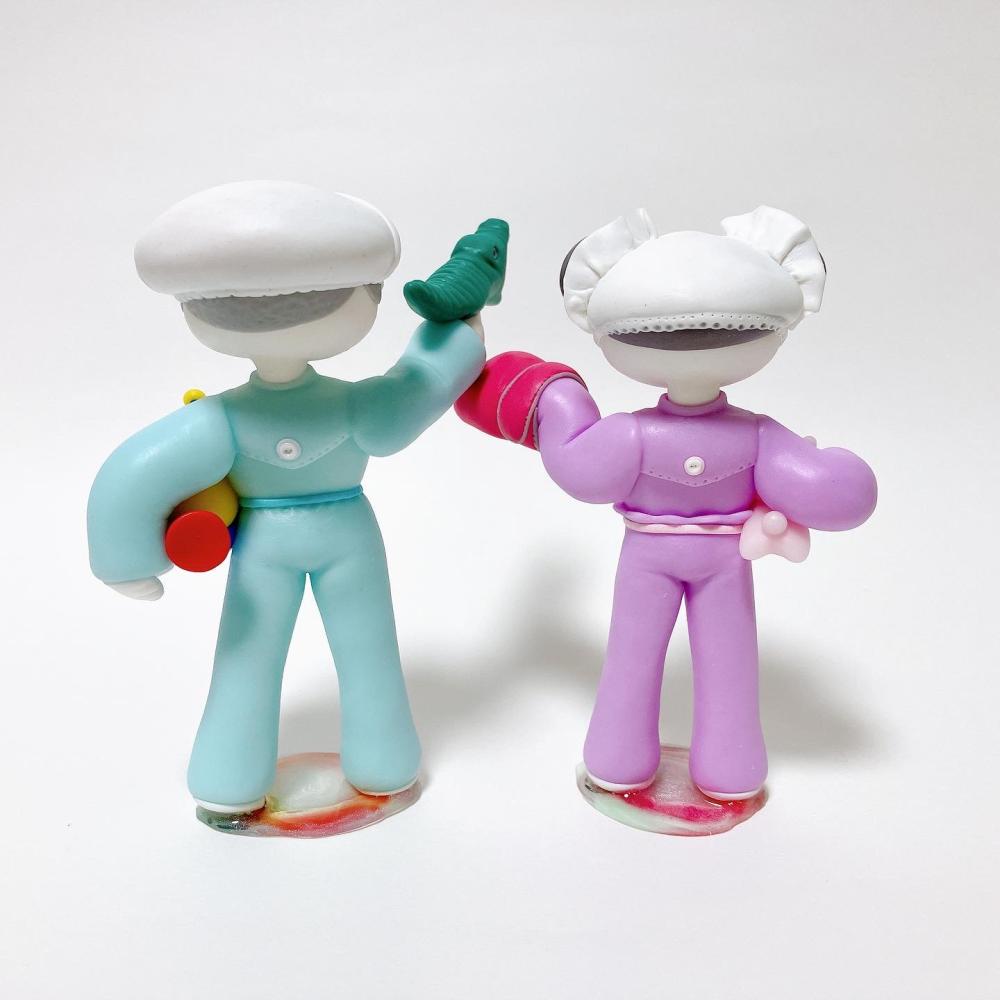 樹脂粘土、アクリル絵具、レジン、ニス