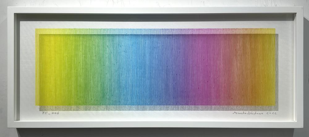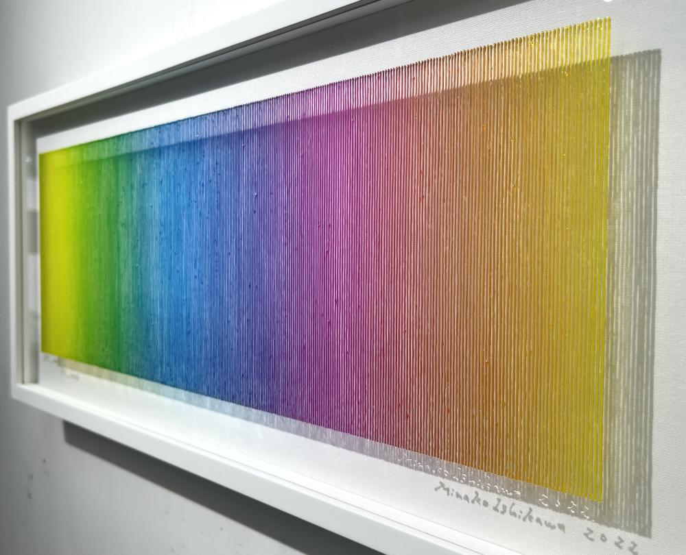 The true beauty of Minako Ishikawa's work is that the lines are drawn with a single thin acrylic stroke, which is arranged among thousands while subtly changing the color scheme.