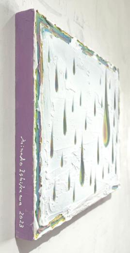 If you think that she paints her work with the colors of the rainbow on a transparent acrylic board, she will change it freely, like drawing with blue on a white canvas, and will attract viewers with her gradations.