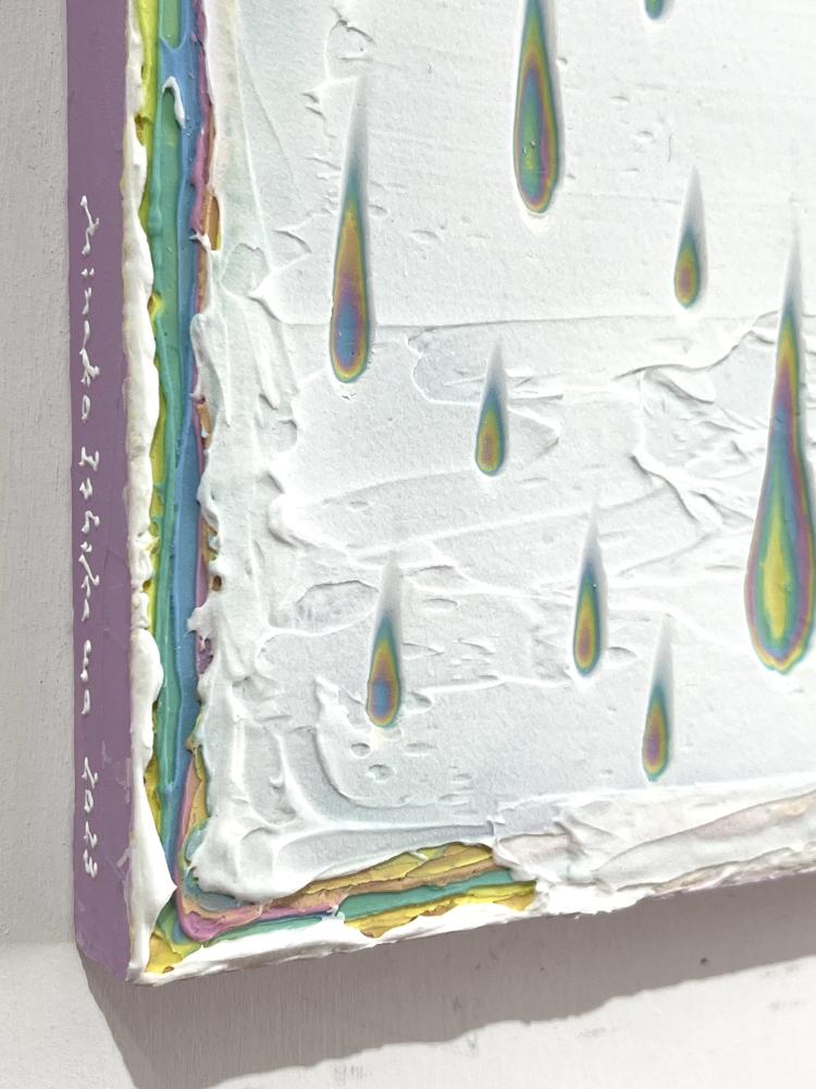The true beauty of Minako Ishikawa's work is that the lines are drawn with a single thin acrylic stroke, which is arranged among thousands while subtly changing the color scheme.